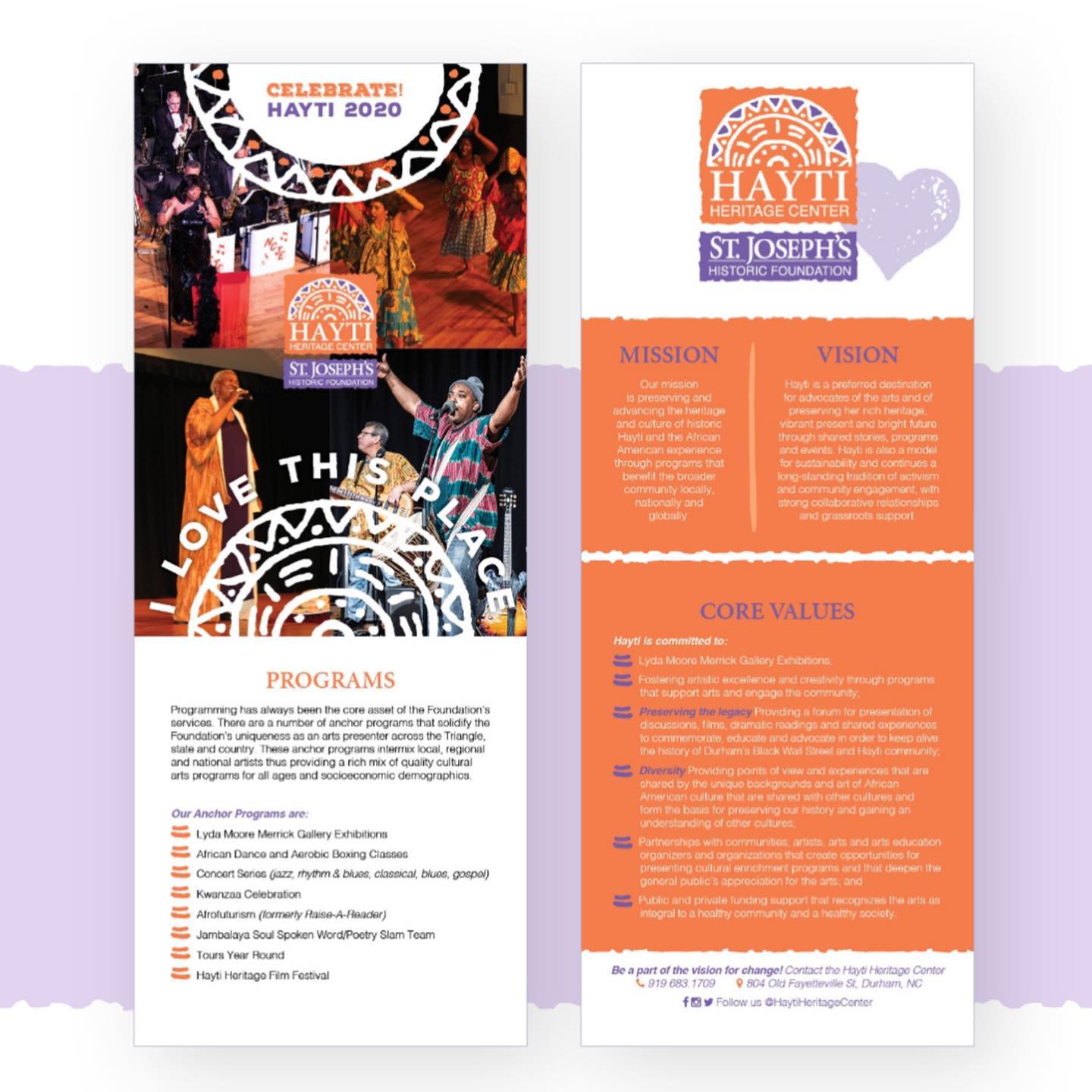 to create a captivating brochure and inserts to help them promote their rich heritage and programs. The Hayti Heritage Center is an African American cultural and educational institution deeply rooted in the historic Hayti community of Durham, and we are proud to continue supporting the Center.
