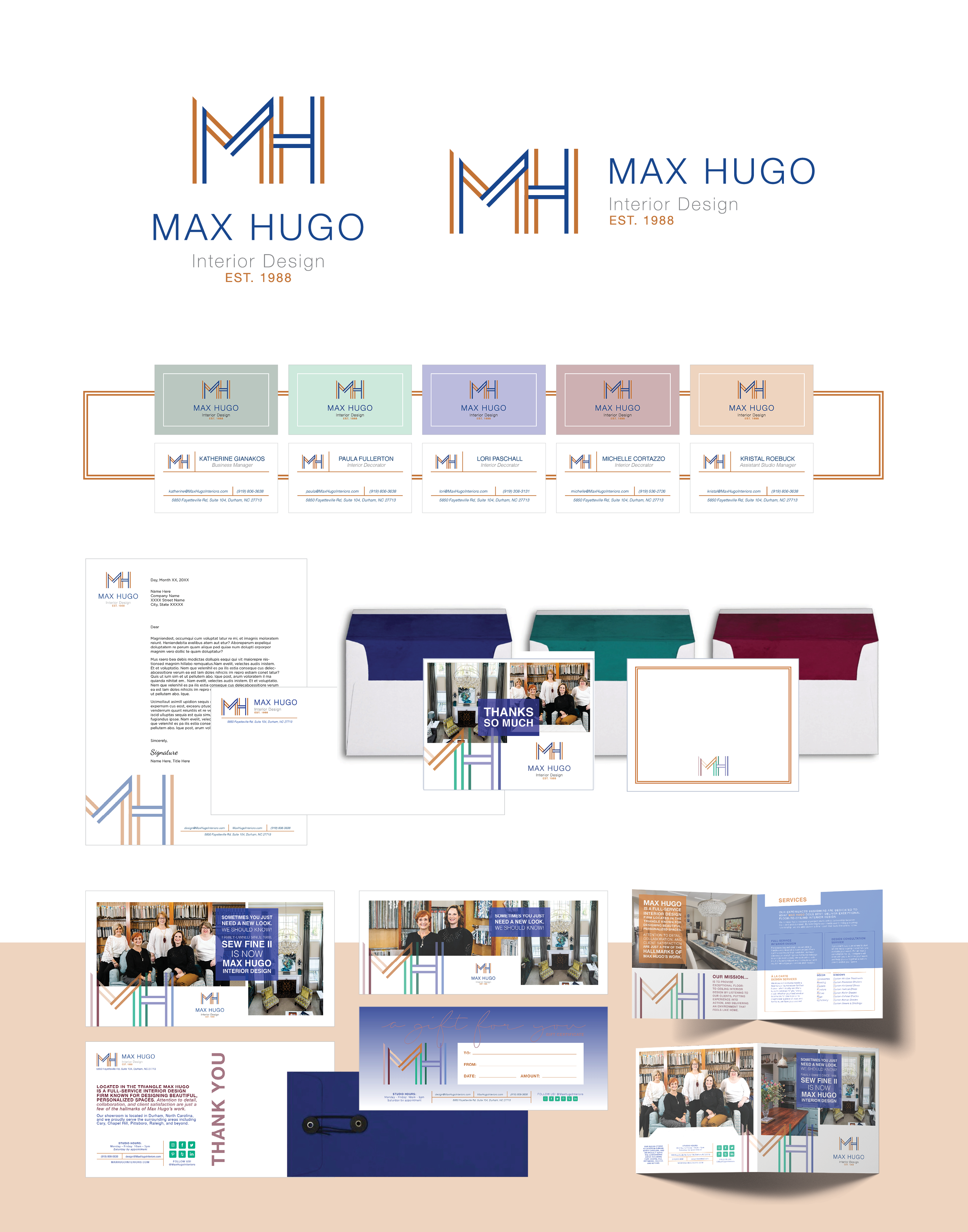 Family owned since 1983, Max Hugo Interior Design (formerly Sew Fine II) approached Allieway Marketing for a full re-brand. Because sometimes you just need a new look—they should know! Allieway was tasked with creating an updated brand and developing a strategy for a seamless and effective transition for this full-service interior design firm serving clients across the Triangle.