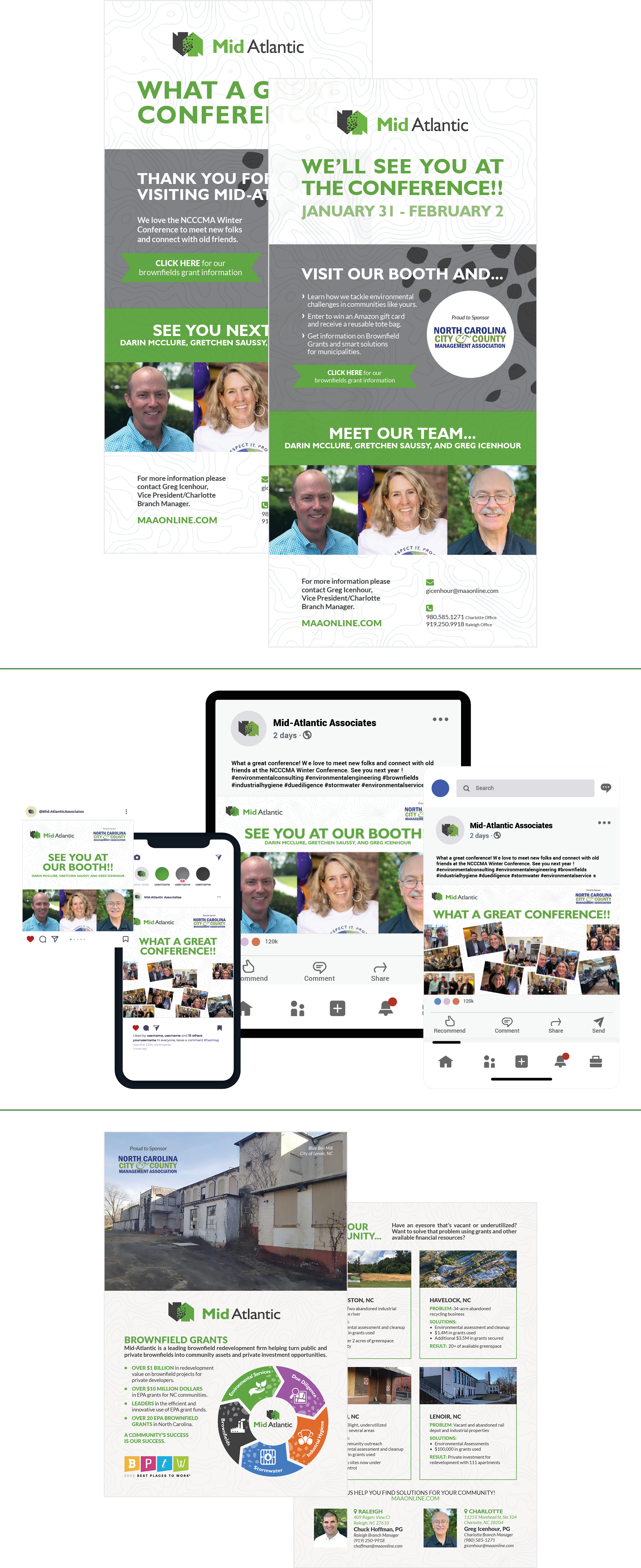 Created 4 social media post templates customized to the conference subject matter and Mid Atlantic’s focus on brownfields development . These assets established a brand presence and gave their participation a consistent and effective voice.