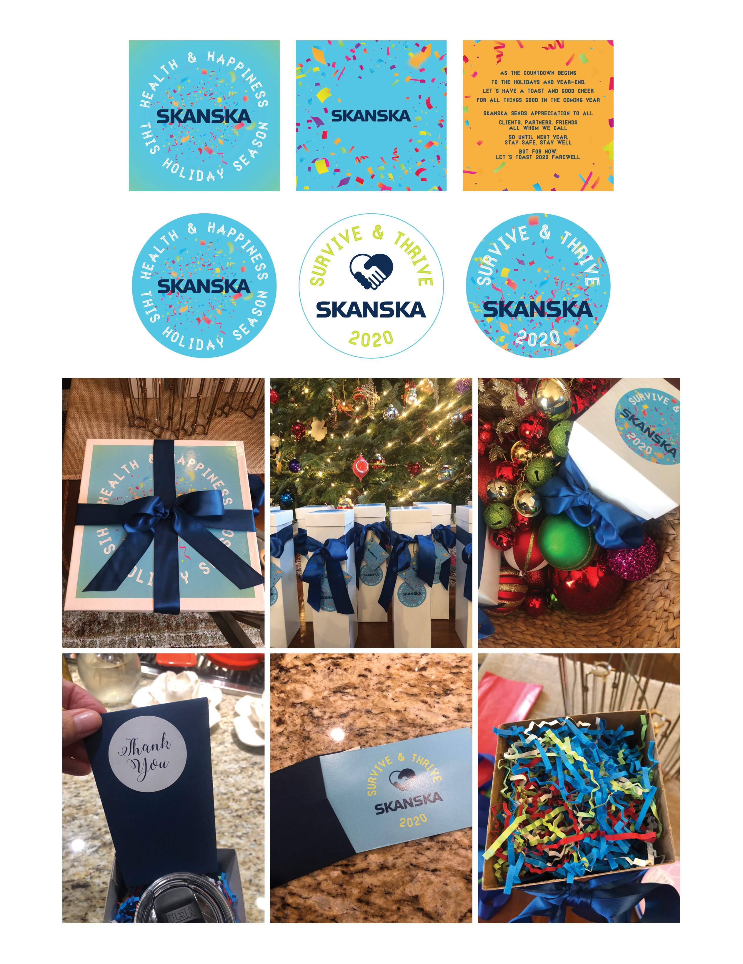 Due to COVID-19, Skanska was unable to have a traditional holiday party for its team or deliver client gifts the way it normally would. So, the organization used Allieway Curated Gifts to show its appreciation for employees and clients over the holidays. Allieway created 30 custom branded “health and happiness” client gifts and 150 “survive and thrive” employee gifts. These curated packages provided a personal touch that were also unique to Skanska’s brand. Showing you care has truly never mattered more, and we were more than happy to help Skanska in this way!